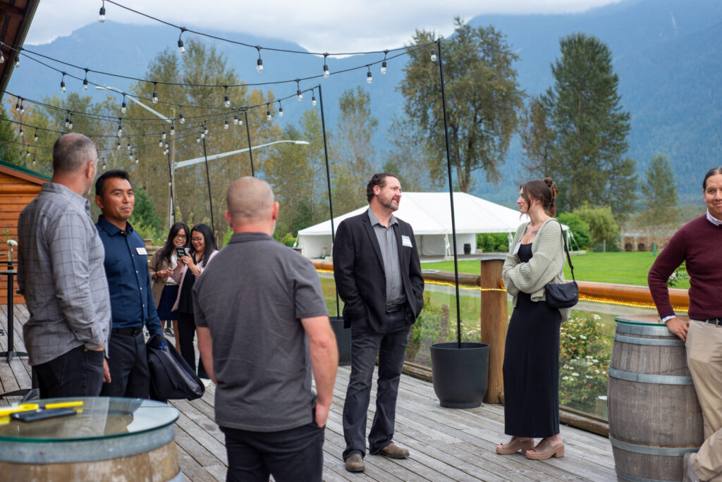 Hosted at Fraser River Lodge, the event featured stunning views of the river and surrounding mountains. Nigel Selvadurai (SqDC CEO) and Sally Hope (Seabird Island Chief & Council member and SqDC’s board chair) opened the evening with welcoming remarks, followed by the PK3 Jazz Trio, whose live jazz set an energetic yet relaxed tone that encouraged conversation and connection.