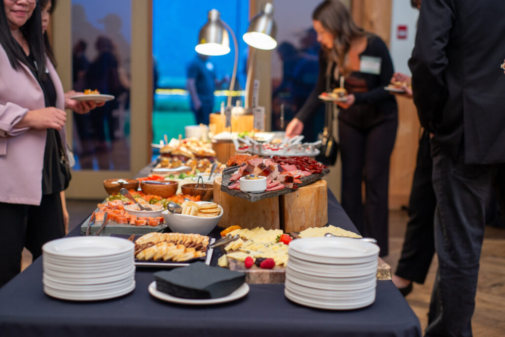 Throughout the night, guests enjoyed an appetizer-style dinner complemented by soft lighting, fresh greenery, and a relaxed yet elegant setting.